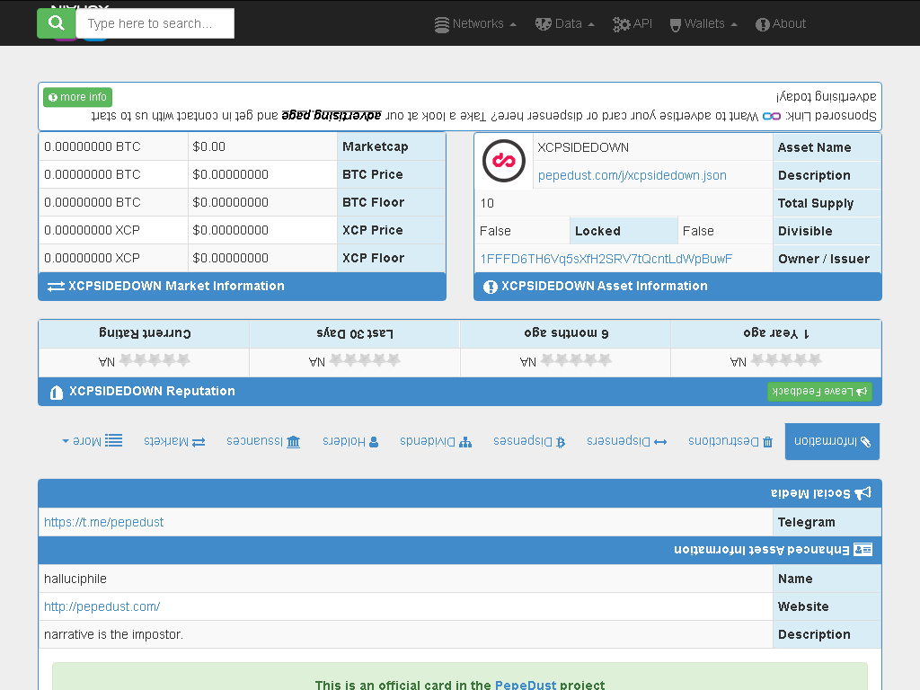 Btc: $67,198 +0.4% | Btc Block Height: 943,634 | XCP: $2.01 -0.0% | PEPECASH: 0.00000011BTC | BITROCK: 0.0000005BTC | BITCORN: 0.00000023BTC | DANKROSECASH: {placeholder} | KEVIN src20: $0.000700 | STAMP src20: $0.012029 | FAKEASF: {placeholder} | CORB: {placeholder}